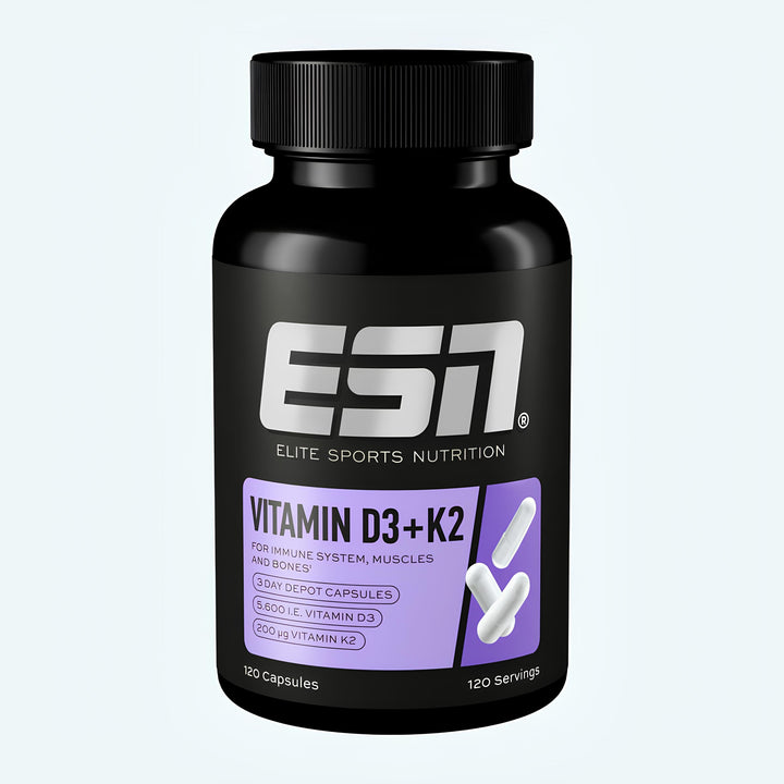 Vitamin power duo: Vitamin D3+K2. Die Kombi aus den Vitaminen D3 und K2 unterstützt effektiv deine Knochen, Muskeln, Immunsystem und Blutgerinnung.1,2 Der ideale Support für deine Performance-Base und das mit nur einer Kapsel alle drei Tage.